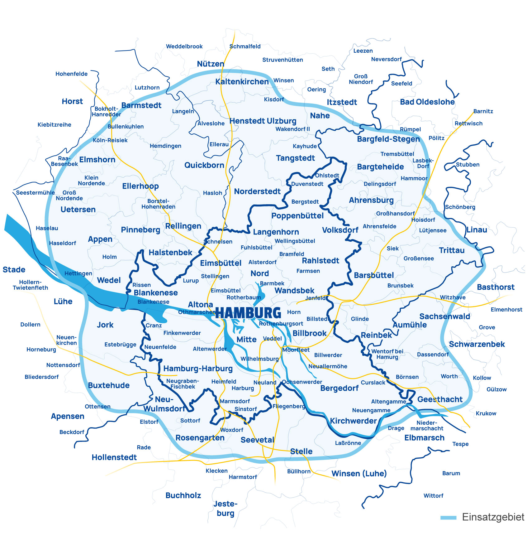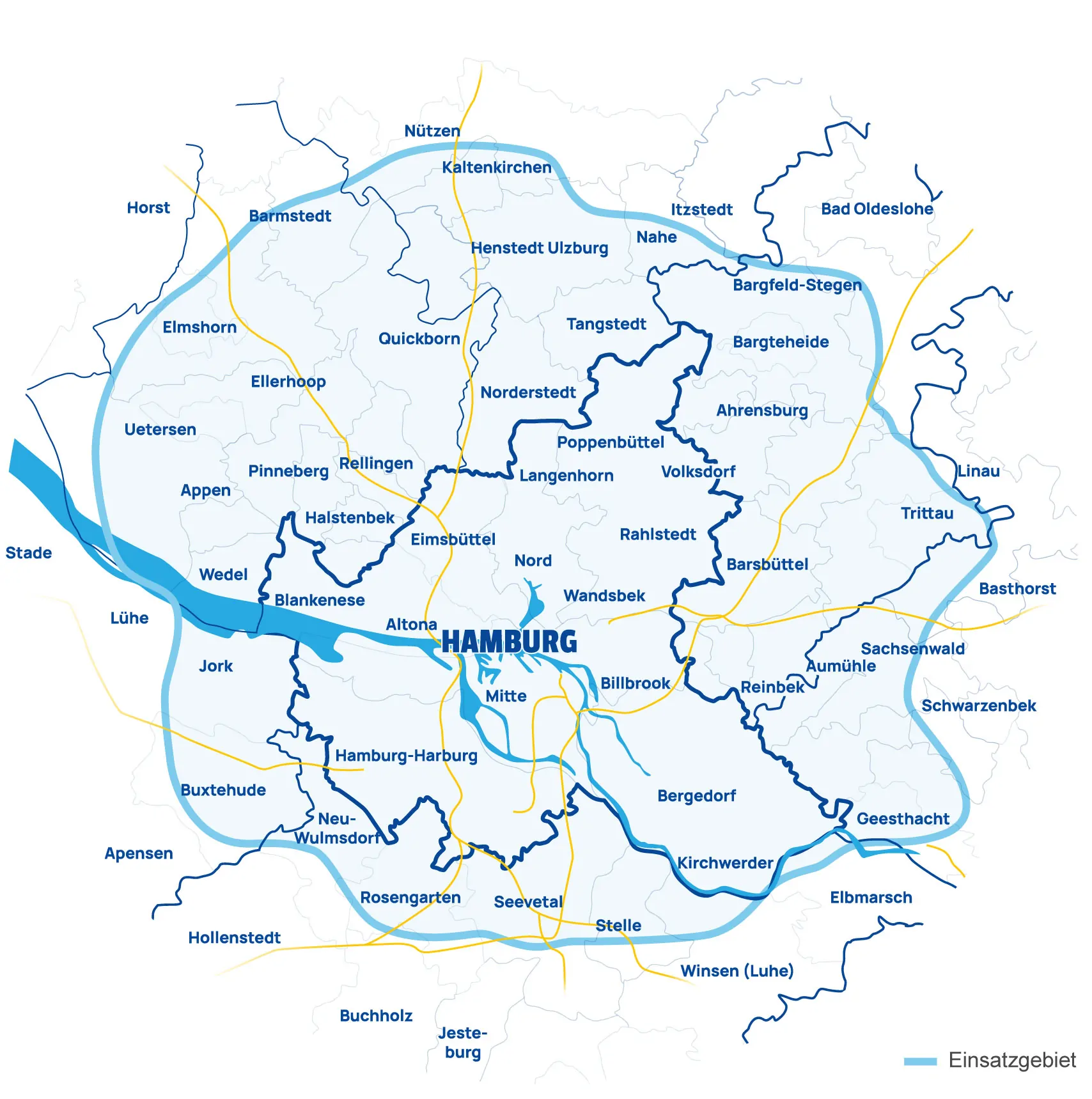 Unser Leistungsbereich erstreckt sich auf das gesamte Hamburger Stadtgebiet und alle Randgemeinden. Wir versuchen uns ständig weiterzuentwickeln, dazu gehört auch die Expandierung in andere Stadtgebiete. Wenn Ihr Gebiet nicht auf der Karte zufinden ist, scheuen Sie sich nicht eine Anfrage zu senden. Vielleicht sind wir bald auch bei Ihnen am räumen.