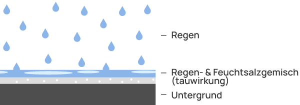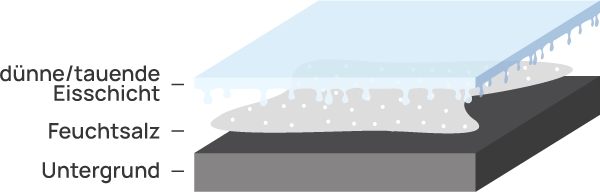 Flächen die mit Feuchtsalz bedient werden, können bei geringen Niederschlagsintensitäten aufgrund des Salz- und Solefilms sogar weitestgehend eisfrei bleiben.