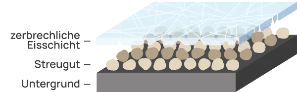 Dadurch wird es anfälliger für die Tauwirkung der positiven Lufttemperaturen und zerbricht leichter bei mechanischer Belastung. Wichtig hierbei ist, dass die Streumittel großzügig ausgebracht werden. Nur dann wirken sie der schnellen Eisbildung ausreichend entgegen.